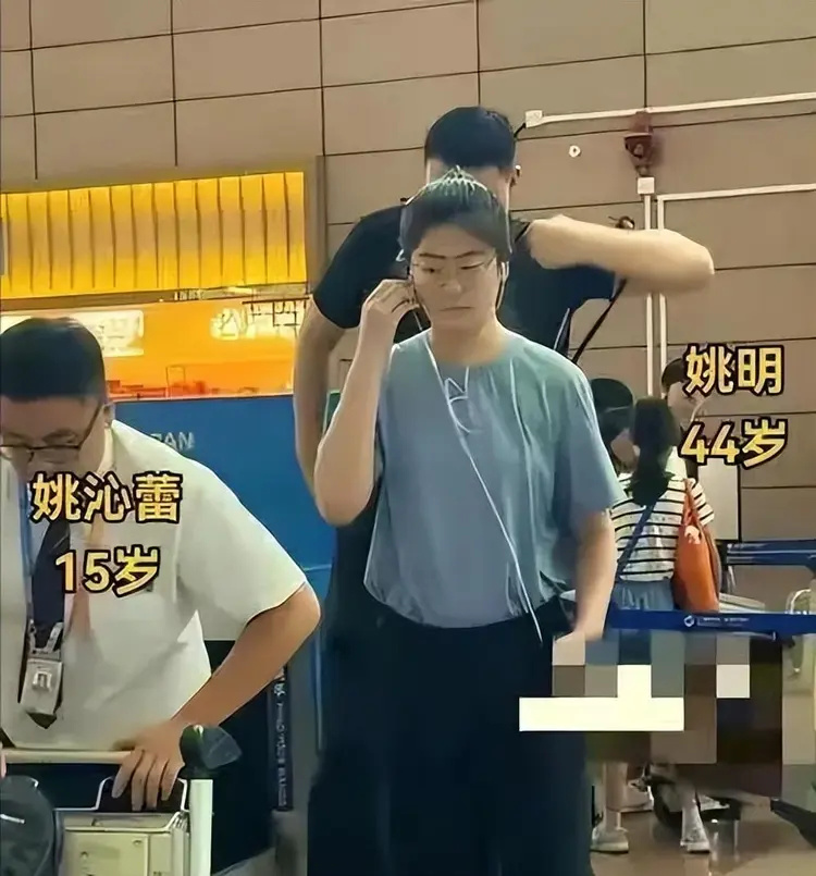 现在站在姚明身边,也就差一个头的距离,跟同龄孩子站在一起,简直是“鹤立鸡群”。