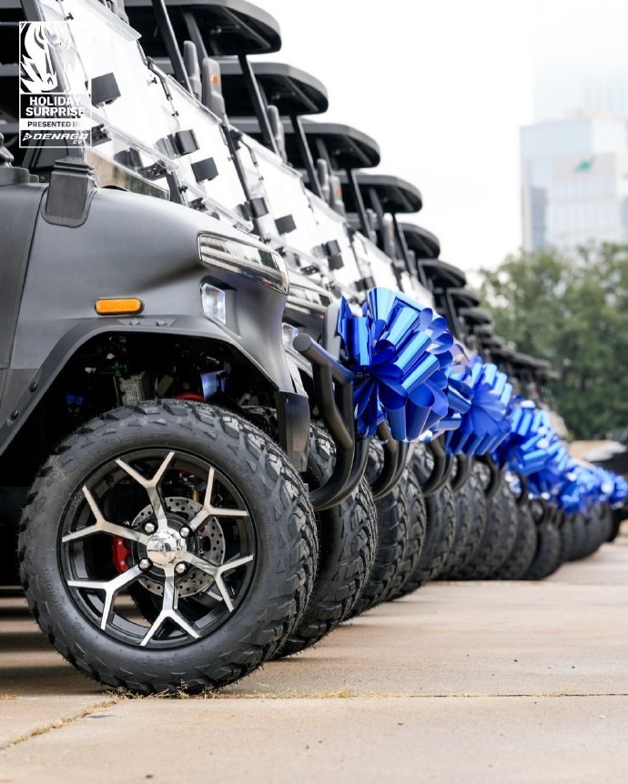 每辆车均印有接收者的专属名字、球衣号码及独行侠队标,属于高端定制款(品牌为德纳戈Denago),顶配四座越野版北美售价约2.3万美元/辆(约16.2万人民币),总价值超百万美元。