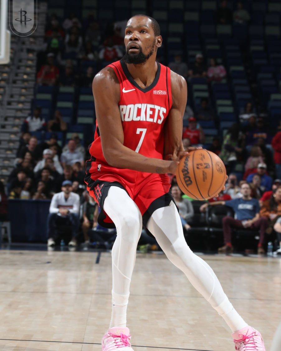 这场比赛KD前7次出手全部命中,上半场18分0失误是生涯第三个半场全中+0失误的比赛,决胜时刻火箭真没人给他球,加时赛全队疯狂打铁KD要球不给,落后到两个球权杜兰特根本不传了,他一人与鹈鹕拼刺刀,全场32分7篮板。