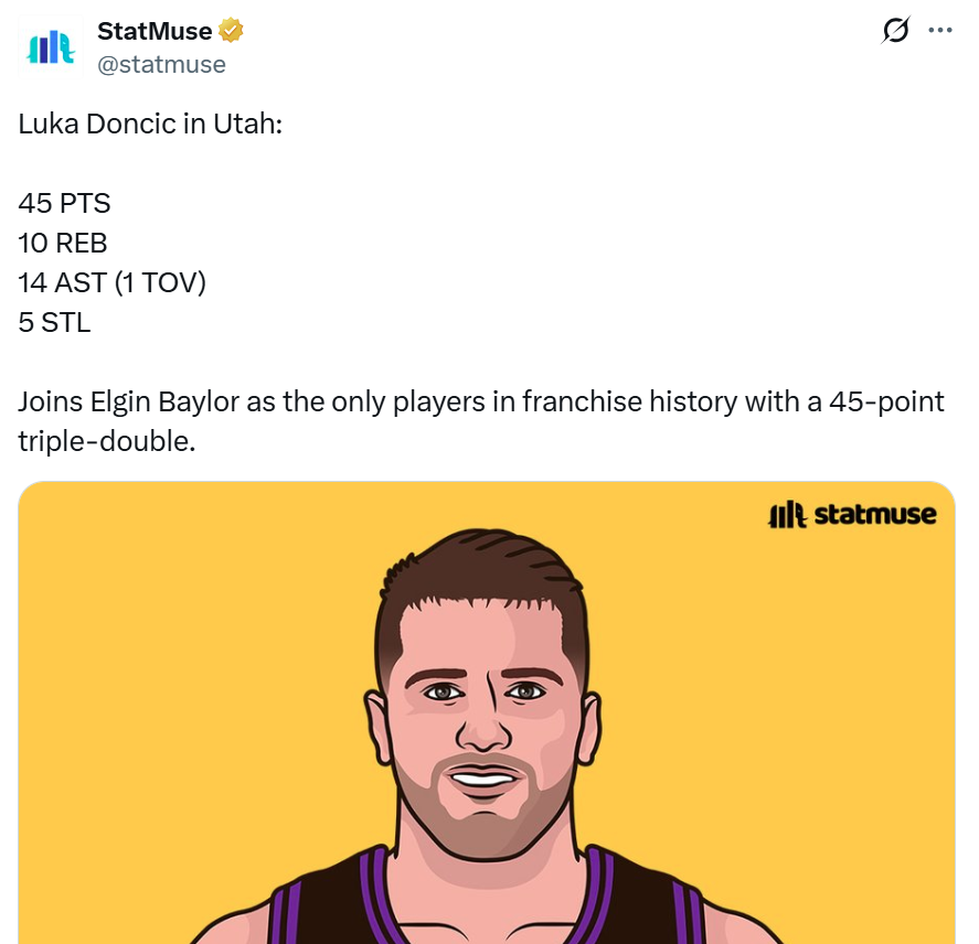 凭借这样的表现,东契奇一战刷爆多项纪录,其中包含数项NBA历史级别纪录,表现含金量十足。