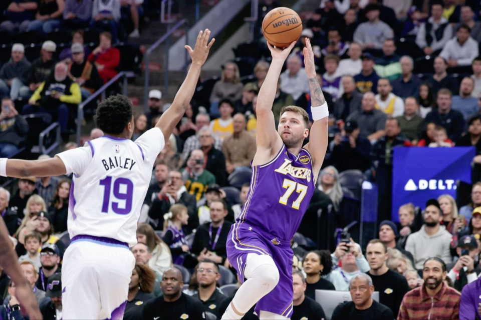 东契奇三双+詹姆斯28+7+10,湖人143-135胜爵士,4倍快乐藏不住了