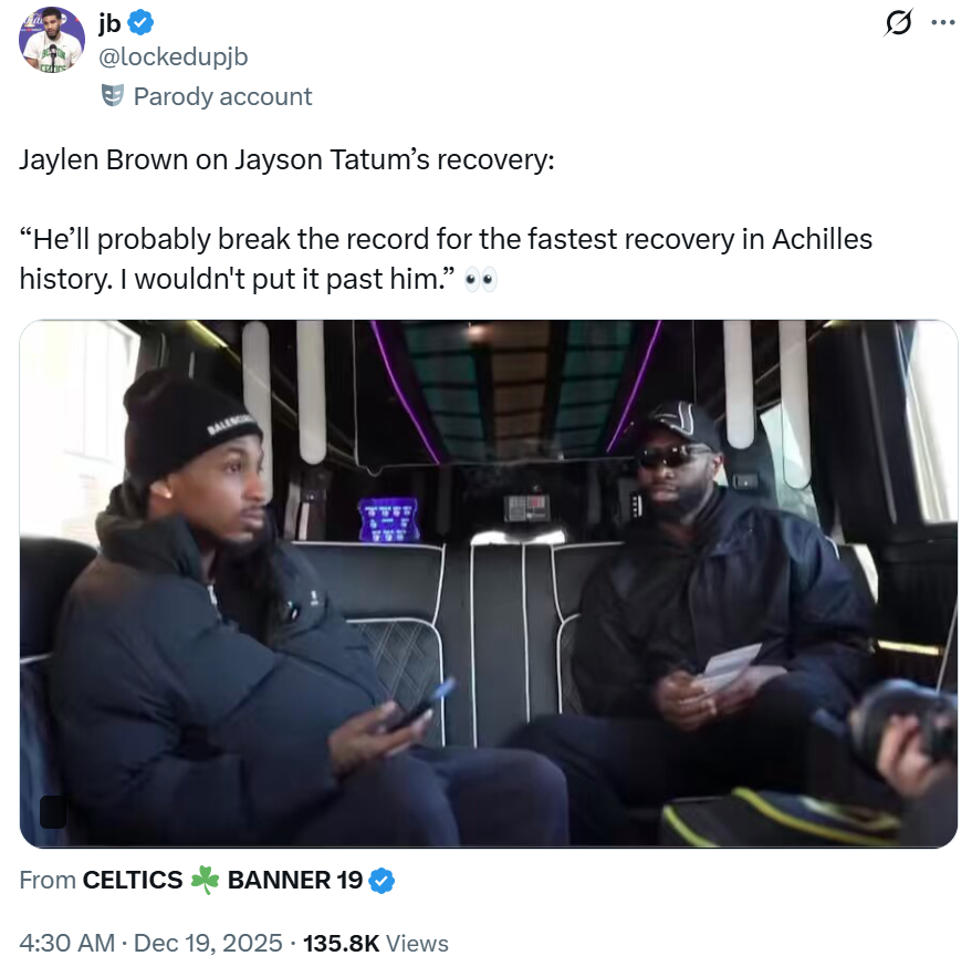 所有迹象都展示出塔图姆伤病状况恢复神速,本赛季极有可能回归。