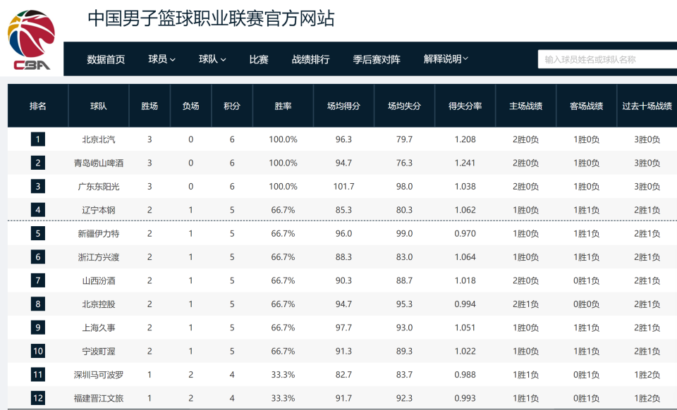 在此,我们也是来看一看,CBA球队前三轮的一些情况: