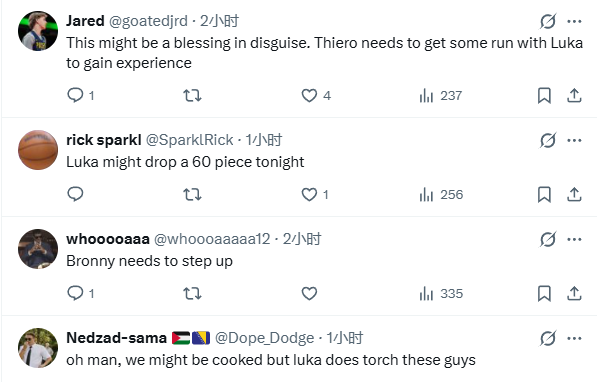 湖人四人伤停引热议,美球迷表示:卢卡今晚能砍下60分,他能把快船打得落花流水;布朗尼需要挺身而出,蒂耶罗需要与东契奇一起出战,积累更多的比赛经验。