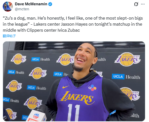 今日训练结束后谈到祖巴茨,海斯表示:祖巴茨绝对是联盟里最被低估的大个子之一,老兄,跟他交过手的人都知道,这家伙多年来一直这么靠谱。祖巴茨真的非常出色,一直表现得很抢眼,他是当今联盟最顶尖的篮板手之一,每次跟他对位都是场硬仗。