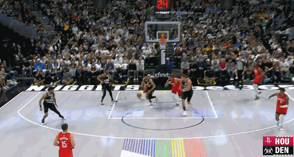 末节,约基奇上篮得分,杜兰特三分命中。杜兰特和小哈达威发生小冲突,各领一次技犯。掘金主帅阿德尔曼不满裁判的判罚,冲上球场怒喷裁判,被驱逐出场。谢泼德上篮得分,穆雷打成2+1,约基奇领到第5次犯规。穆雷打成3+1。阿门勾手得分,杜兰特、小史密斯三分命中,火箭又是一波8-1。约基奇抛投得分,小史密斯领到技犯,随后完成暴扣,阿门也送上暴扣,将分差扩大到21分。比赛还剩4分46秒,掘金撤下主力,布朗连续打成2+1,火箭换回主力,谢泼德抢断扣篮。最终,火箭击败掘金。