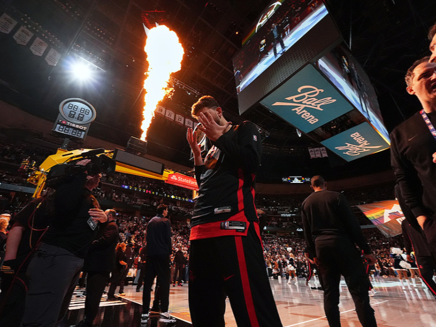 当他看着记分牌上115-101的比分时,眼中闪烁着特别的光芒,乌度卡站在场边,脸上露出释然的微笑。