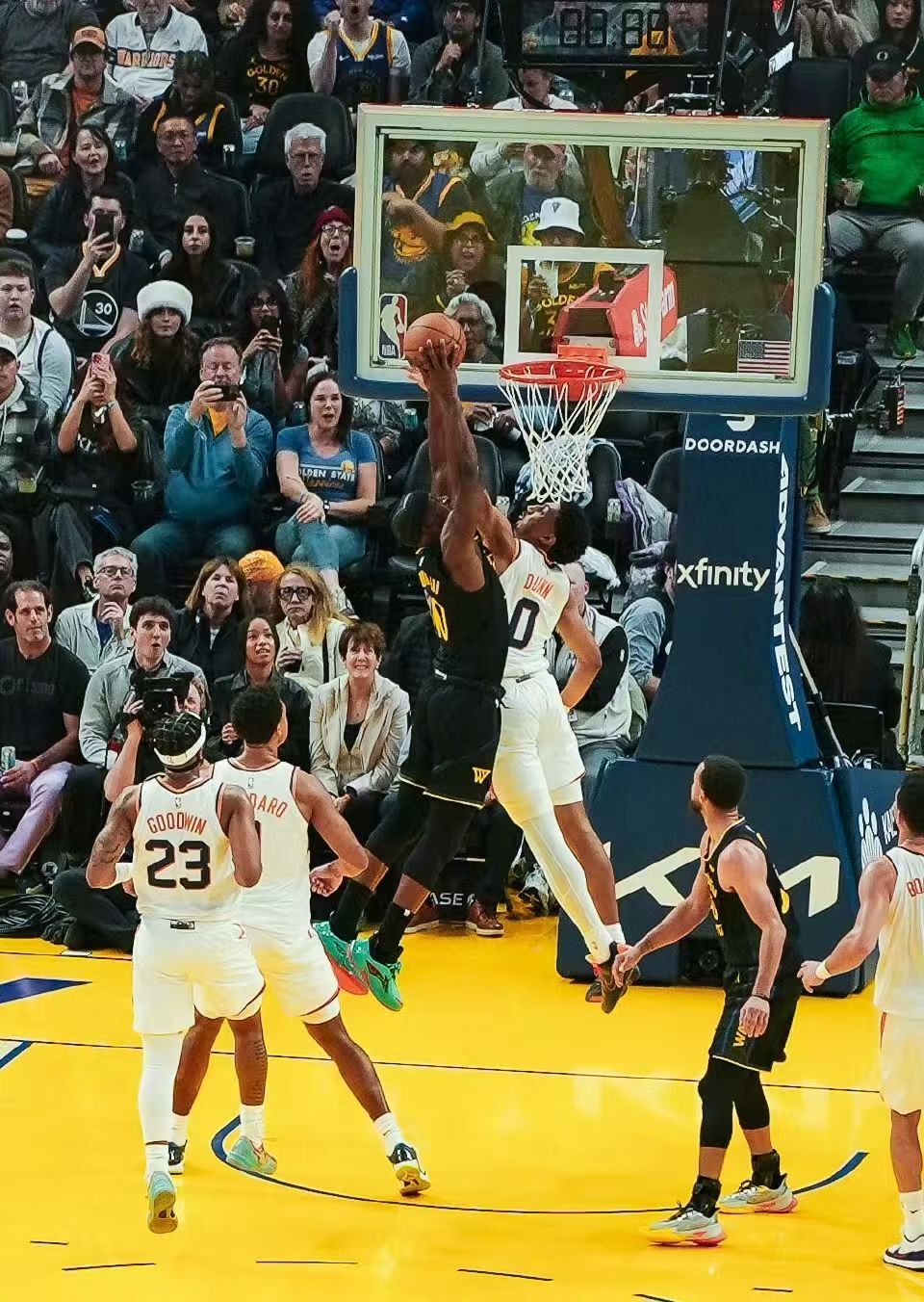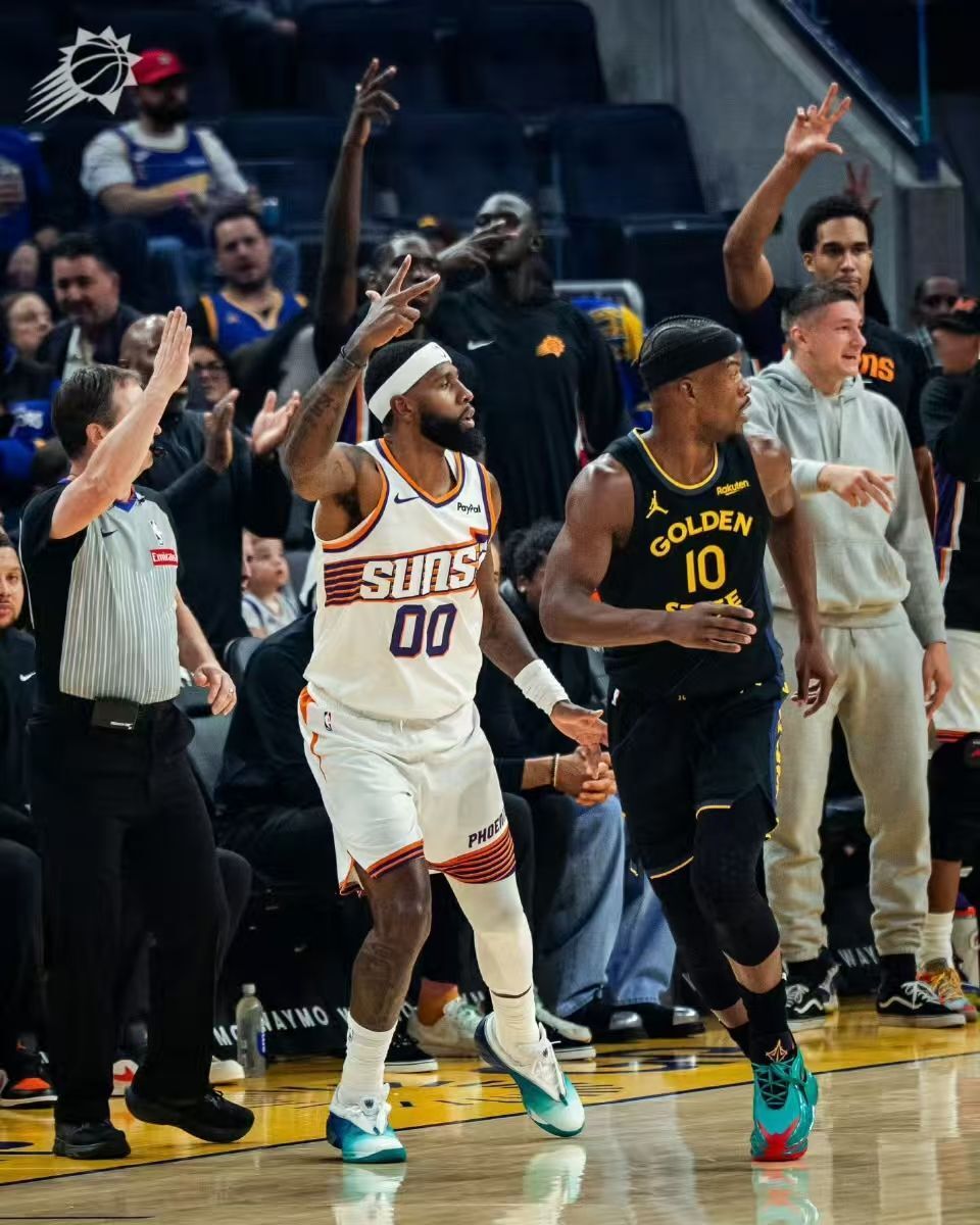 进入下半场,太阳队的进攻依旧低迷,球队投篮连番打铁,只能依靠布克、布鲁克斯2人维持火力,但终究进攻有限,而勇士虽然打的也不是很好,但替补球员表现真的给力,库里也找到手感,球队3节反超太阳6分,掌握了比赛的主动权!勇士末节继续猛攻,球队一下子把分差拉大到11分!眼看比赛愈发不妙,太阳队终于找回状态,布克连投带突独砍7分,带领球队把分差追到4分,重新打回了悬念!关键时刻,库里3分命中,伊戈达罗、古德温连砍5分回敬,巴特勒打成2+1,布克2+1打成,双方分差还是2分,最后时刻,吉莱斯皮投中3分,把分差追到1分!库里上篮得分,布克3分偏出,最终勇士119::116拿下太阳。