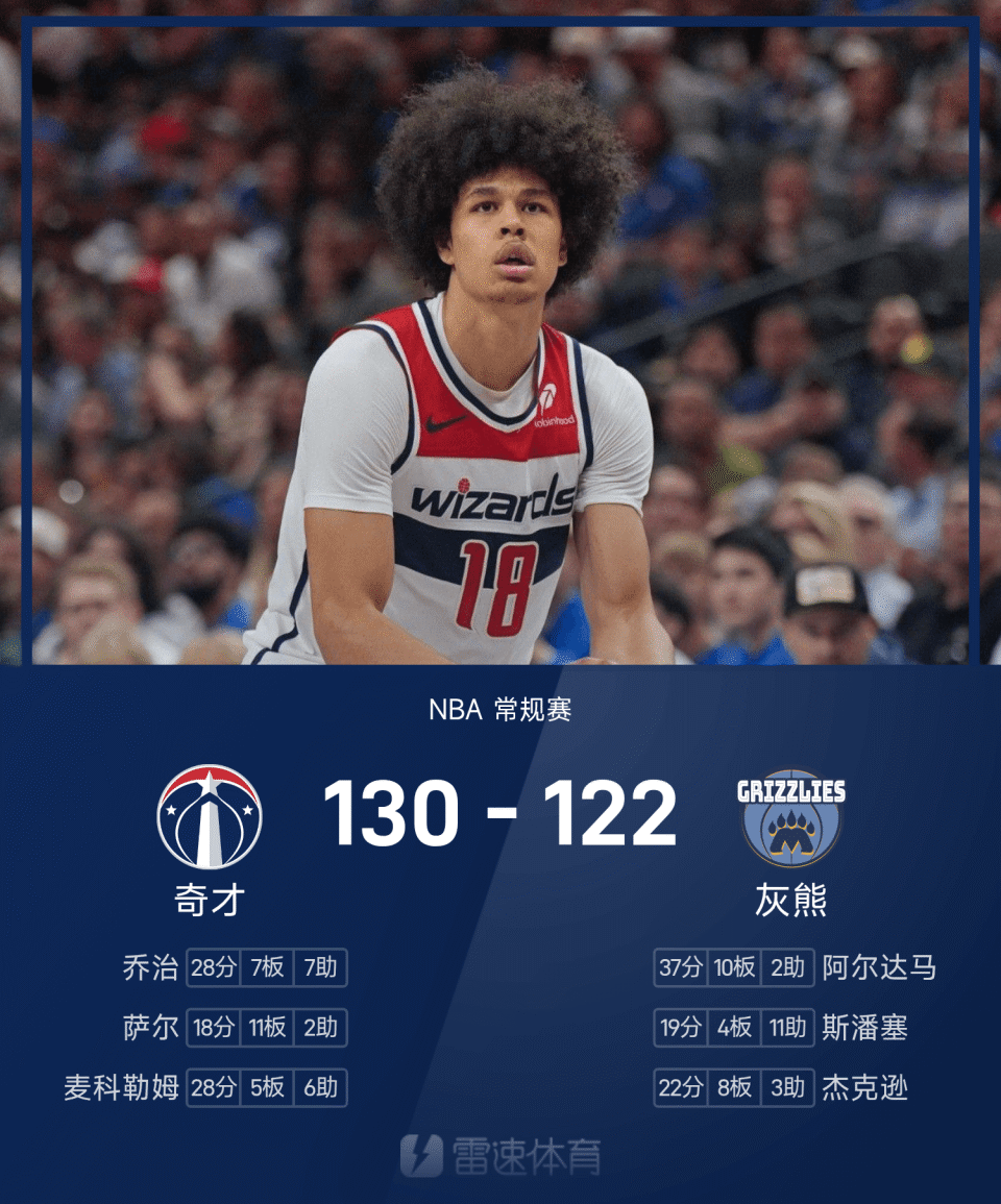 凯肖恩·乔治砍下28分7板7助攻,奇才战胜灰熊拿下赛季第五胜。