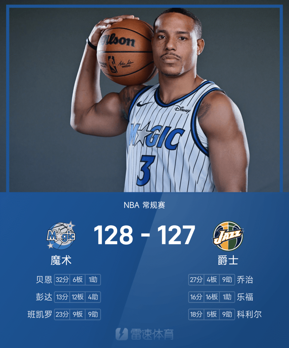 贝恩砍下32分6板并贡献准绝杀,率球队加时险胜。