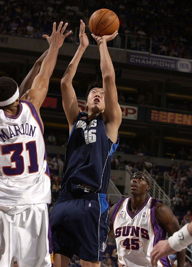 姚明初入联盟时,脚步非常梦幻——他可以运球背转身过掉对手扣篮,也可以突进内线假装上篮晃起对手,等对手起跳后他再转身在另外一边上篮。