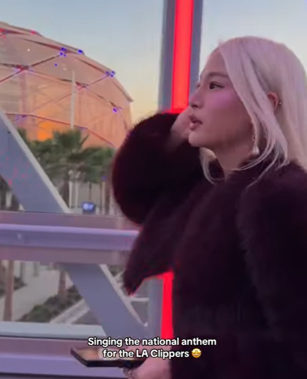 美籍韩裔美女歌手在快船赛前献唱!长相酷似Blackpink成员朴彩英
