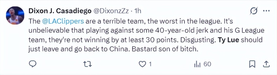船蜜:快船真的糟糕透顶了, 面对一个41岁老头子代表的G联赛水准球队,他们竟然只赢了10多分,太恶心了,赶紧解雇泰伦卢吧,滚去中国执教吧,泰伦卢这个混蛋。