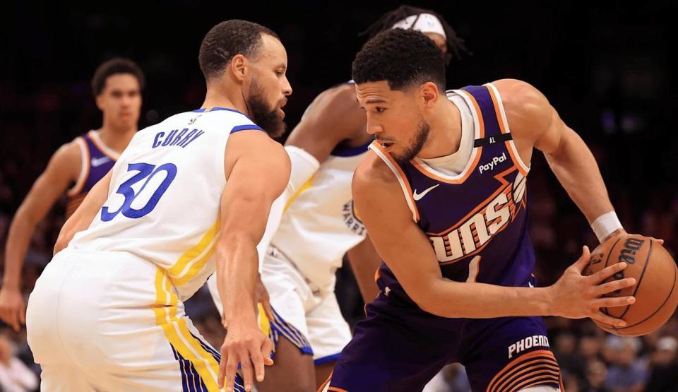 次节比赛开始,库里面向突破如狼似虎,飞身上篮帮助勇士先下一城;吉莱斯皮眼疾手快,抢断快攻一条龙上篮得手,波斯特定点三分跳投一击命中,库里的高难度三分球打进还有加罚,布克的横移跳投中距离两分落袋;理查德义无反顾强起补篮得手,布克手感火热,同样的位置中距离再进一球,理查德不甘示弱,连续飙射两个三分球都有;勇士在进攻端渐入佳境,逐渐缩小比分差距到5分以内;半场比赛战罢,太阳67-64领先勇士3分。