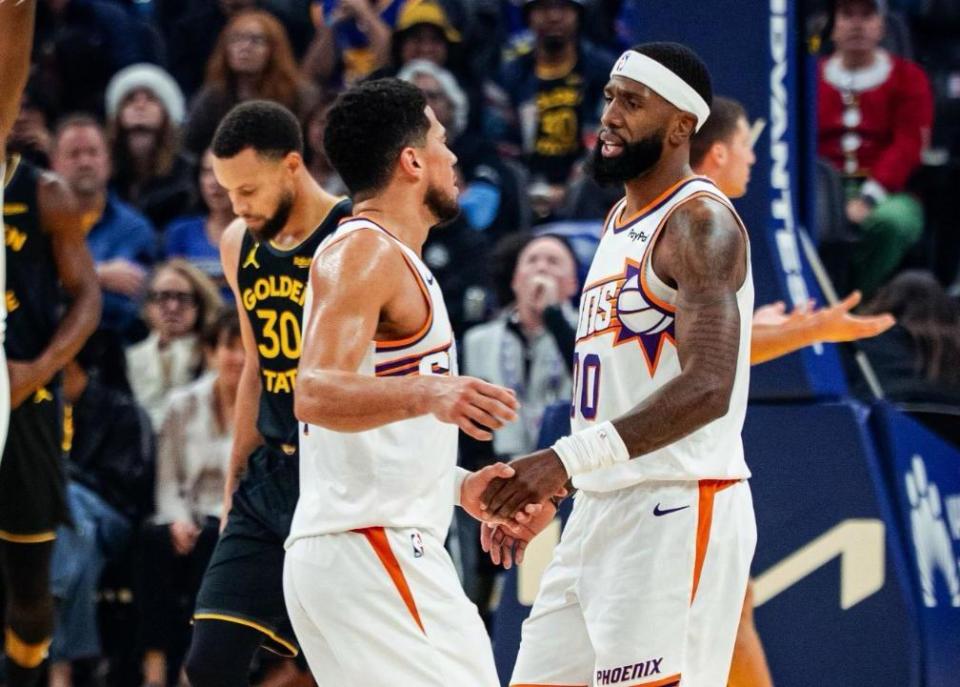 另一边的太阳队,本场比赛之前,15胜12负排名西部第7;即便太阳休赛期送走了杜兰特和比尔,但他们仍然具备冲击季后赛的能力。