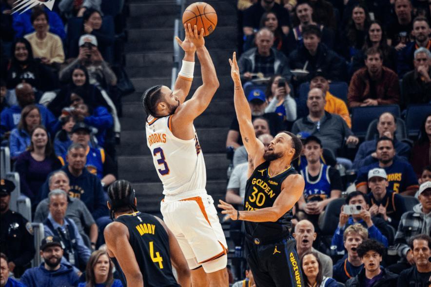 首节比赛,太阳进攻火力拉满,单节轰出44分并占据主动权;第一节比赛结束,太阳44-32领先勇士12分。