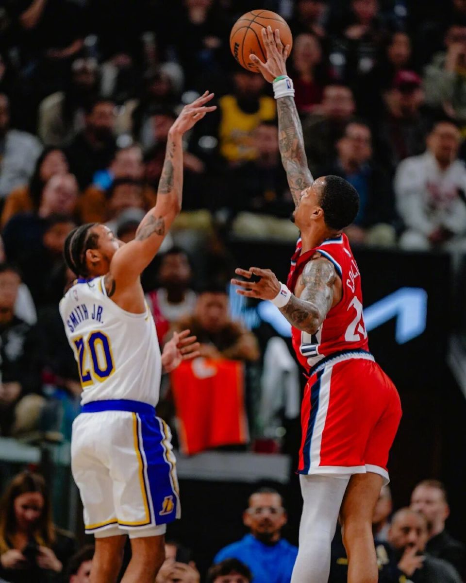 越不准,越要投。第三节湖人三分10中2,前三节三分球29中4,三分命中率只有可怜的13.8%。湖人两分球出手38次,只比三分球多9次。三节打完,快船80-61领先19分。第四节斯玛特投篮落地踩在桑德斯的脚上,裁判吹罚后者一级恶犯。
