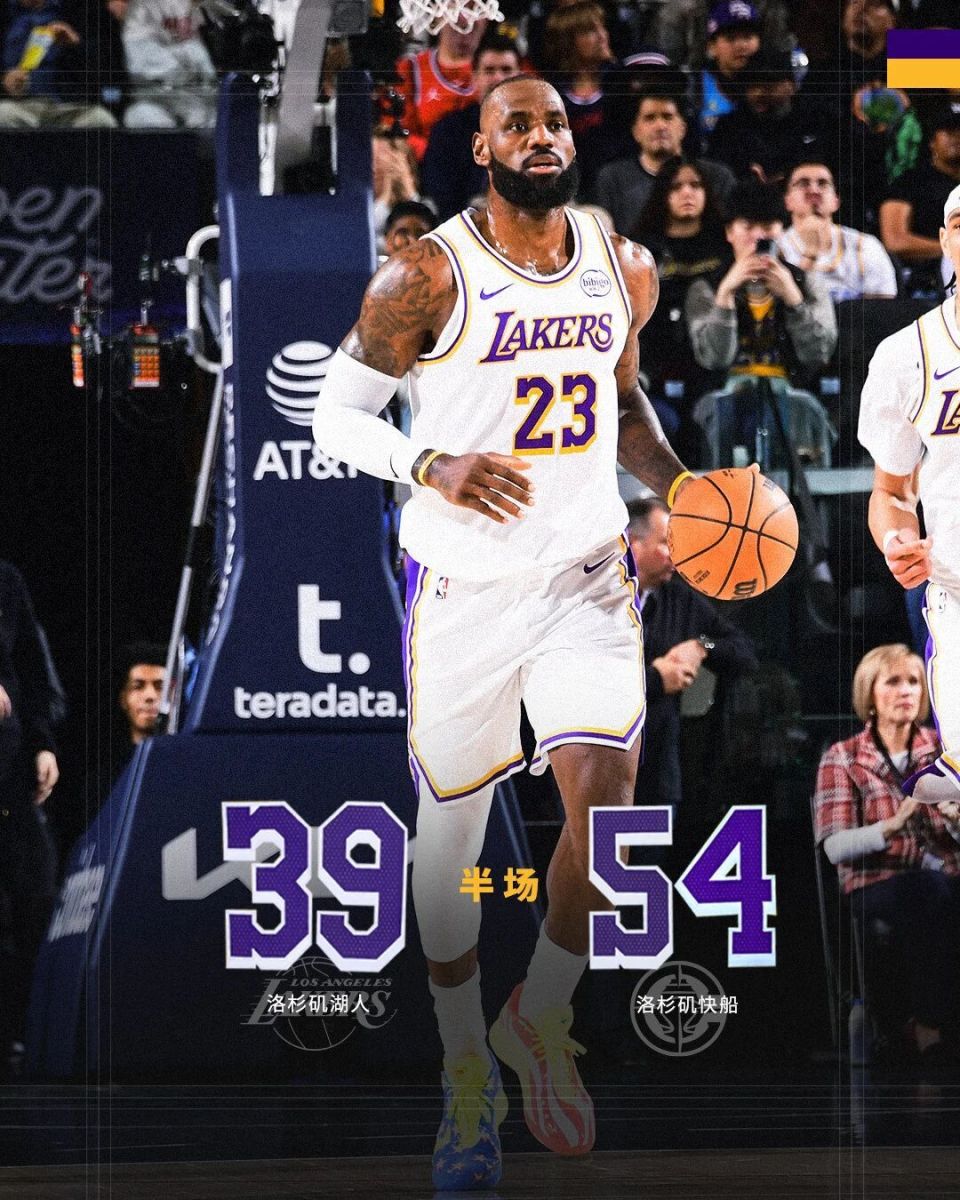 第二节湖人三分线外8中1,好在两分球命中率回升,单节得到24分。伦纳德火力全开,次节7投4中独得15分。除了伦纳德之外,其余快船球员加起来单节11分。半场战罢,快船54-39领先湖人15分。湖人全队7次助攻,出现6次失误。