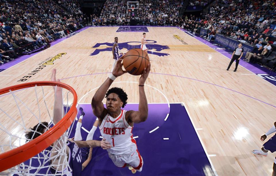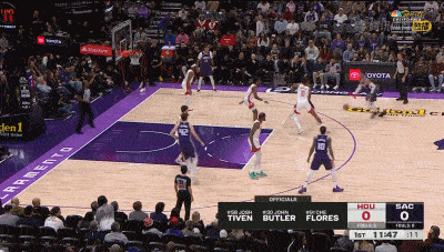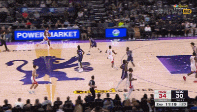 次节比赛,史密斯三分命中,阿门上篮得手,杜兰特跳投连中扩大领先。国王迅速回应,雷诺上篮命中,施罗德快攻上篮得分,克利福德两分跳投命中紧咬比分。伊森和谢泼德连续命中三分!国王队德罗赞两分跳投、三分命中连追分数,申京多次突破扣篮和空切上篮得分,杜兰特命中三分,穆雷突破上篮得分,申京两罚全中,威少命中三分。随后阿门完成暴扣,谢泼德造成压哨犯规三罚全中,火箭队68-57领先国王队结束上半场。
