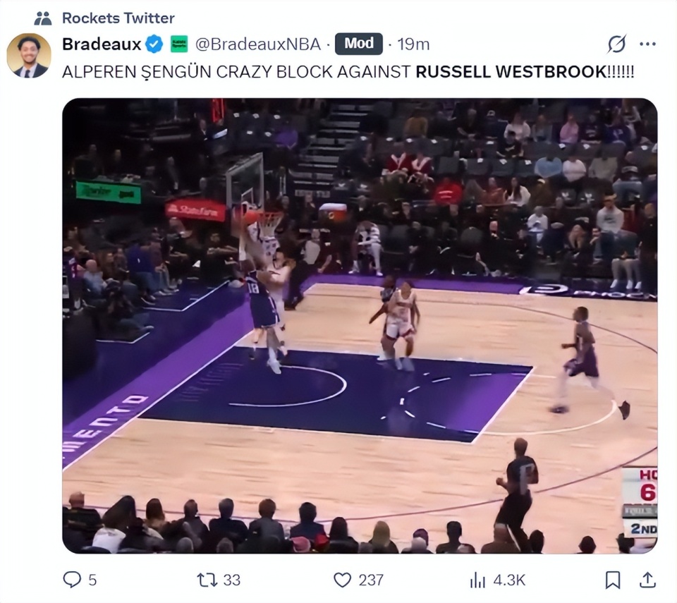 面对国王的菜鸟中锋雷诺,申京是各种篮下单吃,申京上半场还追帽前火箭名宿拉塞尔-威斯布鲁克,申京打出攻防一体的表现,他扫去了之前两场比赛的阴霾。
