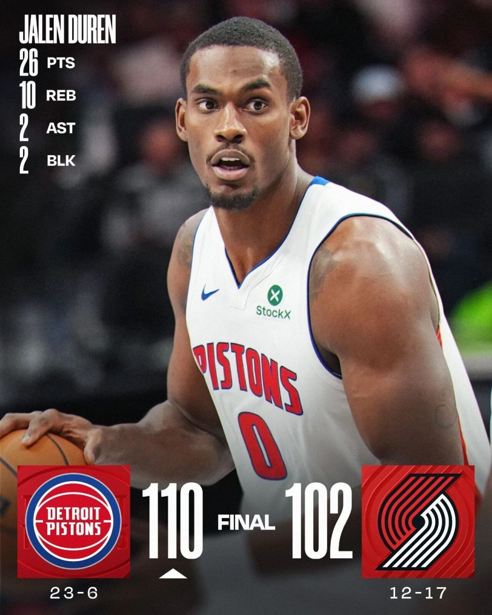 北京时间12月23日,NBA常规赛:开拓者102-110不敌活塞。比赛到了第三节,活塞最多领先到21分。第四节坎宁安6犯离场,开拓者轰出一波22-4完成反超。接下来开拓者连续犯错,活塞还了一波10-2,最终开拓者逆转失败。