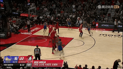 先是库里在与追梦挡拆时出现一次传球失误,这球追梦因为贝恩的拉拽未能及时顺下,球直接出界。