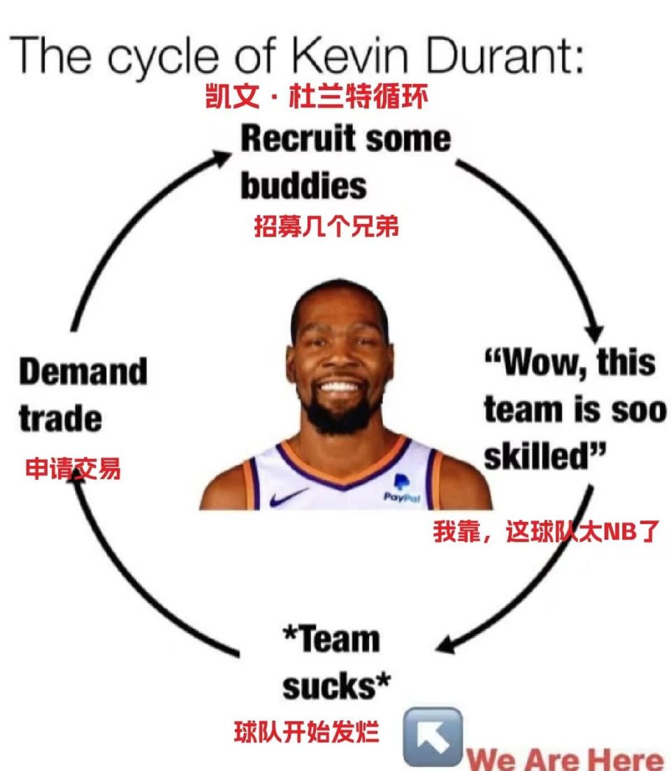 对此,有人制作了一张图用于调侃杜兰特,如下: