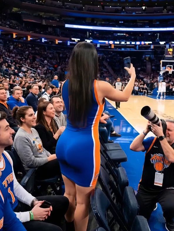 尼克斯美女球迷观战年终大战被偷拍!发现后大方秀火辣身材逗乐旁人