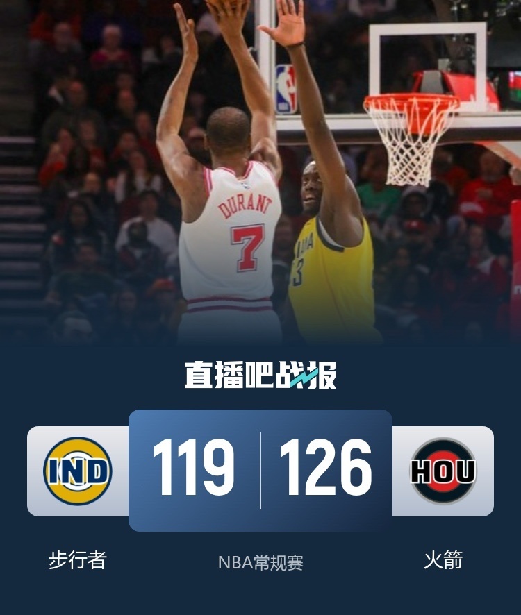 杜兰特30分,小贾20+10,火箭击败步行者三连胜