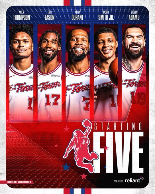 现代篮球最重要的就是球星个人能力与空间的结合,这点我们从本赛季的凯尔特人(布朗+空间)、最近的快船(卡登+空间)都能看出来。当火箭充分利用杜兰特的恐怖牵制力,他们的进攻比之前好看很多。