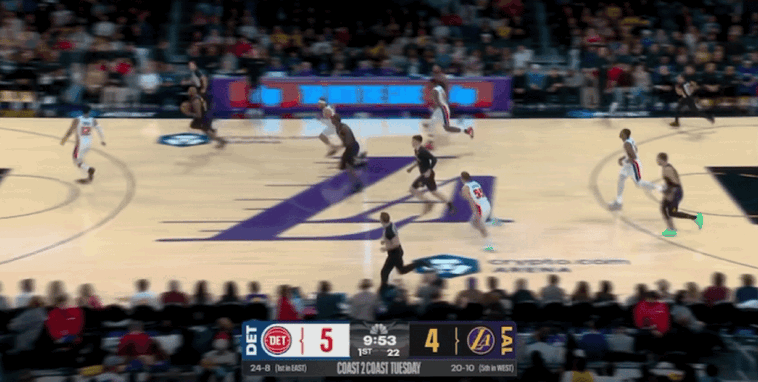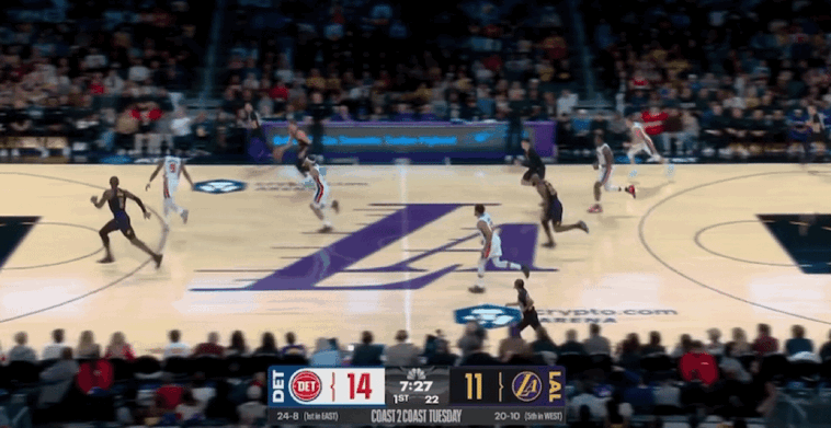 次节比赛开始,坎宁安连续突破得手,活塞扩大领先优势到15-1,双方分差迅速来到14分。詹姆斯三分命中为湖人止损,东契奇撤步跳投命中,杜伦和汤普森连续站上罚球线4罚3中,詹姆斯三分再进。两队交替得分,活塞始终维持分差在10分左右,海斯和拉拉维亚连得帮助湖人迫近分差,萨瑟三分回应。范德比尔特和史密斯连得5分,里德上篮打进2+1,坎宁安扣篮得手,詹姆斯和东契奇连得6分。