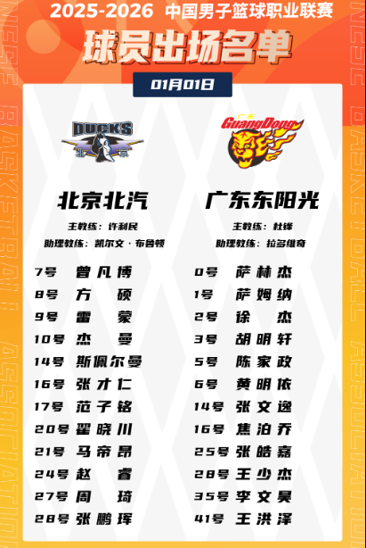北京时间1月1日,2025-26赛季CBA常规赛北京主场对阵广东,曾凡博迎来回归首秀,广东外援奎因受伤缺席。北京攻防压制广东上半场就取得57-31领先优势,徐杰第二节中段膝盖受伤被背下场,北京下半场继续碾压广东扩大30+优势提前奠定胜局,最终北京轻松以105-74战胜广东,广东结束开局8连胜吞下新赛季首败,两队均是8胜1负战绩。