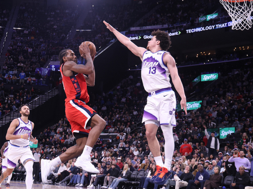 伦纳德的统治力在比赛关键时刻尤为明显。当爵士在第三节首次反超比分,将比赛拖入胶着状态时,正是他的连续得分稳定了军心。