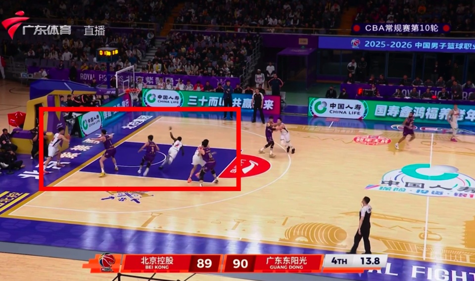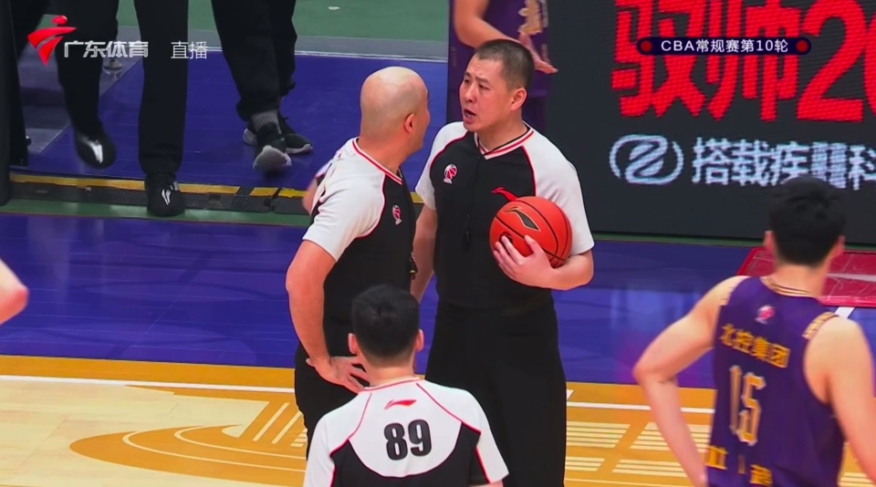 比赛进行到最后13.4秒,场上局势紧绷到了极点,广东队仅以微弱的1分优势领先。此时北控球员范汇鎏对广东外援萨姆纳实施战术犯规,试图通过停表来博取最后的一线生机。然而就在哨响之后,场上出现了极其罕见的一幕:当值的“光头裁判”原本打算前往技术台查看录像回放,以确认犯规的具体细节或时间,但身旁的2位裁判却有不同意见,79号裁判突然伸手一把按住了他,随即直接给了北京北控一次技术犯规。三名裁判在关键时刻意见不合的画面通过直播镜头传遍了全国。这次判罚直接改变了比赛走向,萨姆纳获得罚球机会,虽然他2罚仅1中,但这位本场砍下38分的大功臣机警地抢到了价值连城的进攻篮板,并随后补篮得手,彻底杀死了比赛悬念。