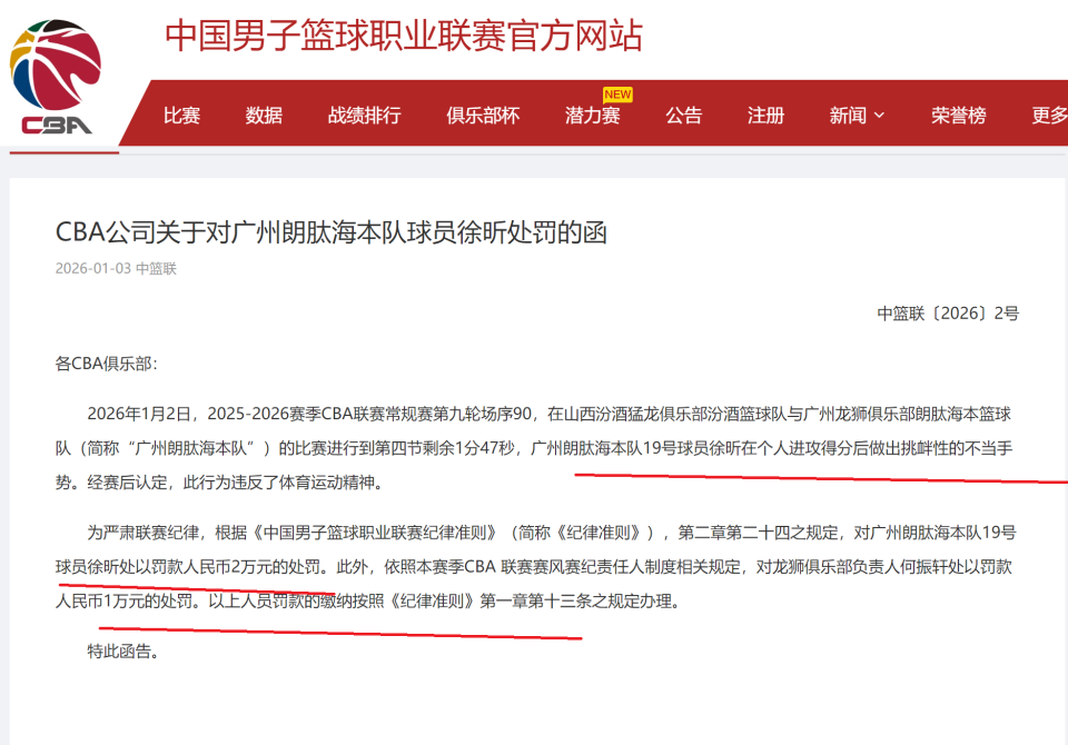 深夜11点半!CBA公司给徐昕开出了一份大罚单