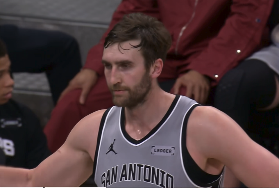 本场上半场结束时开拓者以55-51领先马刺,杨瀚森在前两节中都有出场,不过没有投篮出手机会,帽掉了哈珀,助攻卡马拉上篮得分。第三节当克林根手部出现受伤,还剩5分多钟,两队71打平,杨瀚森再次获得表现机会。奥利尼克太会演了,造了克林根犯规,然后又在进攻端制造了西索科的犯规,还想造小杨犯规,投篮没进。
