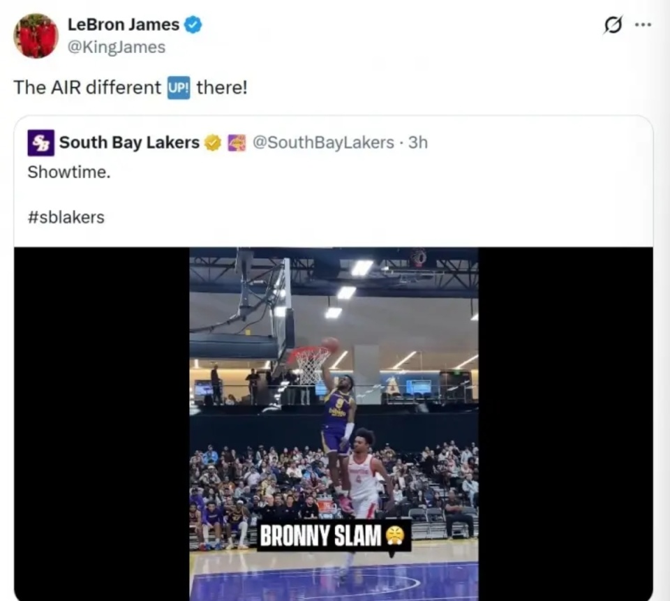 对此,勒布朗詹姆斯转发评论道:“上面的空气与众不同啊!”。由此可见,老詹对布朗尼的这一攻防表现是感到颇为得意!