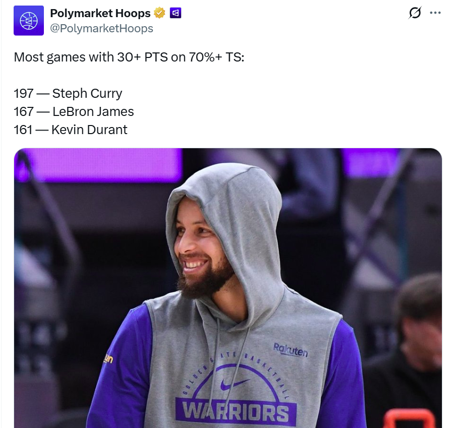 凭借这样的表现,库里不仅打破这一项纪录,也是其生涯第197场以70%+真实命中率轰下30+得分表现,同样是断档历史第一,詹姆斯167次排在第二,杜兰特161次第三。