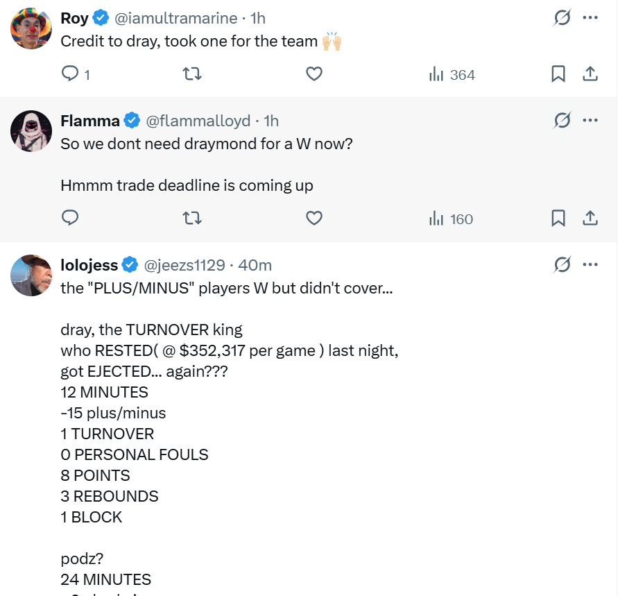 勇士球迷也是一边倒认为勇士是时候送走追梦了,没有他在场时球队明显更好。