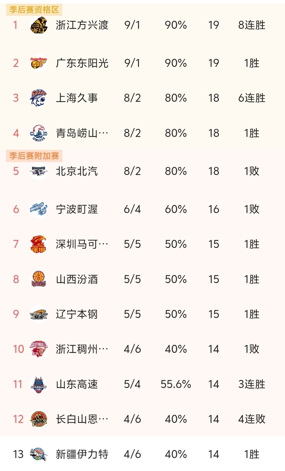 随着新疆男篮111-108险胜,辽宁结束4连败,CBA最新积分榜出炉!