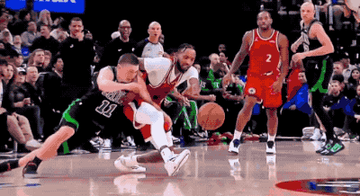 普里查德整个人的重量压在脚踝上,导致小琼斯摔倒的时候膝盖出现扭伤,这看着都疼。