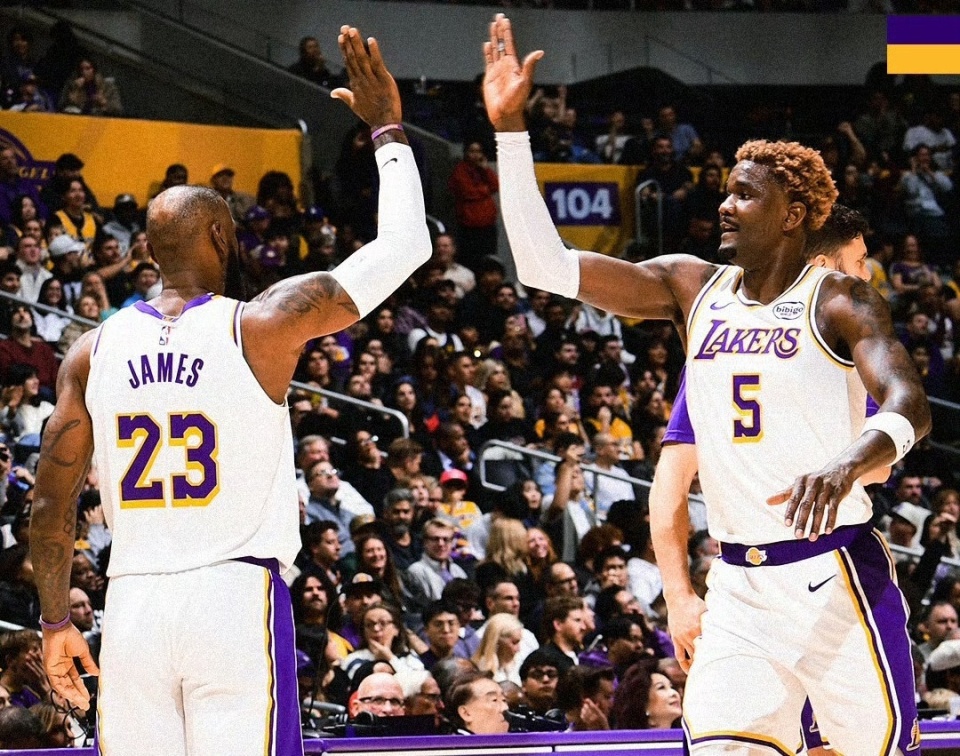 湖人队先发:詹姆斯、拉拉维亚、艾顿、斯玛特、东契奇!