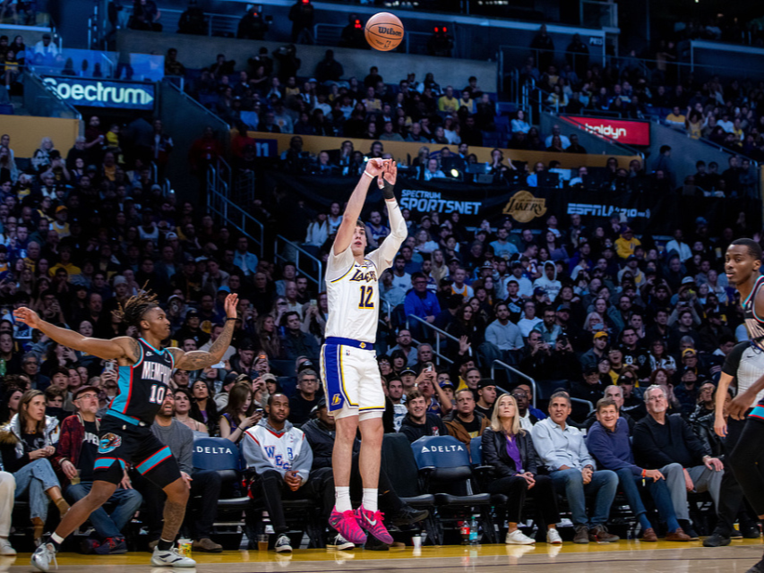 湖人队攻防两端都显得混乱,主场球迷一度陷入沉寂,关键时刻,是拉拉维亚站了出来。他在外线命中关键三分,为球队止血。