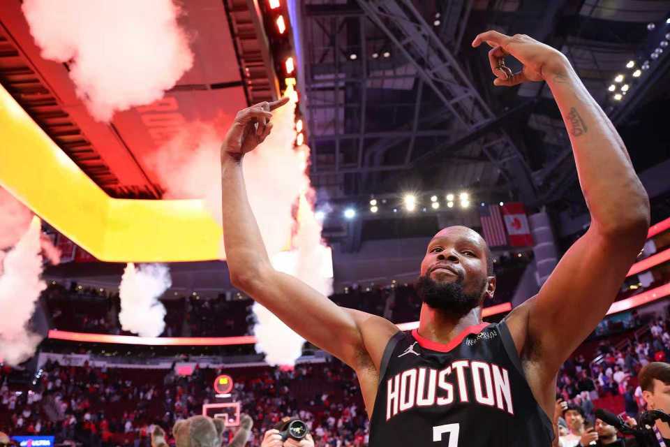 有记者说:“KD,我知道你对老东家依然怀有感情,但作为一名竞争者,能在对阵老东家时命中这样的绝杀球,是不是对你来说意义格外不同?”