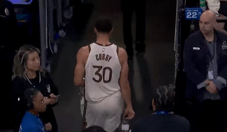 库里在首节中段一度返回更衣室。