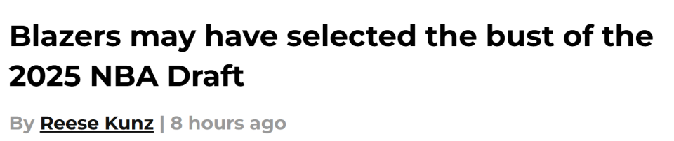 北京时间1月6日,开拓者记者Reese Kunz撰文谈到了杨瀚森。他的标题是“开拓者可能选到了2025年选秀大会的最大水货”,以下是他的文章相关内容——
