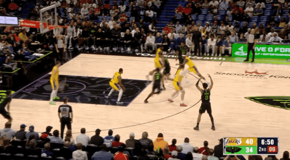 湖人三线配合由詹姆斯折叠暴扣终结