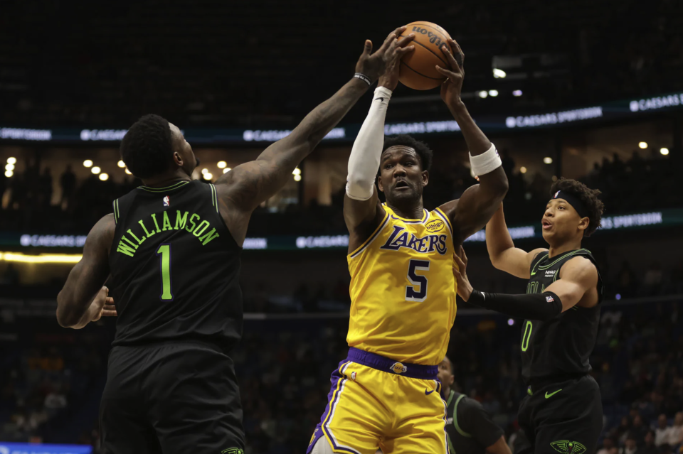 易边再战,墨菲空切上篮,艾顿突破暴扣,费尔斯和墨菲连续得分,东契奇三分命中。锡安突破上篮,艾顿空切得分,奎因冲筐得手,斯马特三分命中。艾顿勾手打进,湖人反超比分,墨菲连得5分,艾顿空接上篮,锡安空接暴扣。斯马特三分命中,墨菲连得5分还以颜色,东契奇突破抛投,奎因挑篮打进。墨菲和马特科维奇连得5分,鹈鹕取得9分领先优势,詹姆斯连得5分予以回应,墨菲突破打进2+1。三节比赛结束,湖人79-86落后鹈鹕。