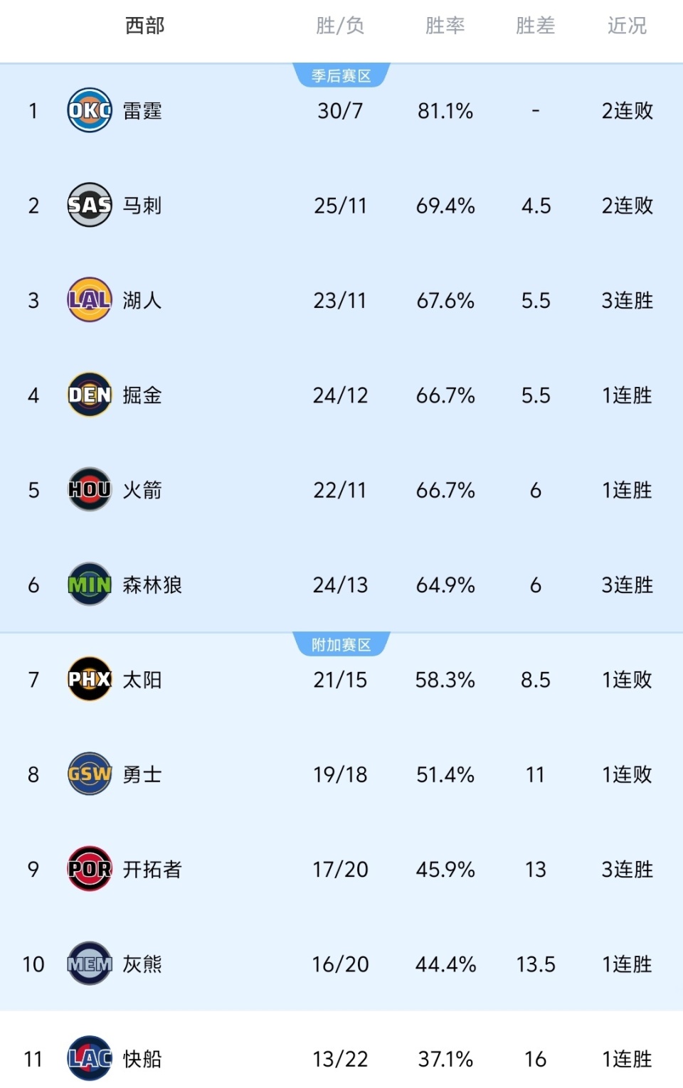 随着马刺105-106爆冷,湖人赢球,NBA最新积分榜出炉:湖人力保第3!