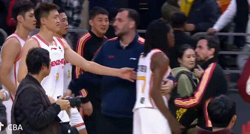 史密斯不甘示弱,也用手指着麦考尔对喷,两人打起嘴仗。后来周鹏将史密斯拉回来,让吵架的两人分开了。其实这两队感情很好,广东队有前深圳队员,而深圳队也有前广东队员,这样的嘴仗没有必要。